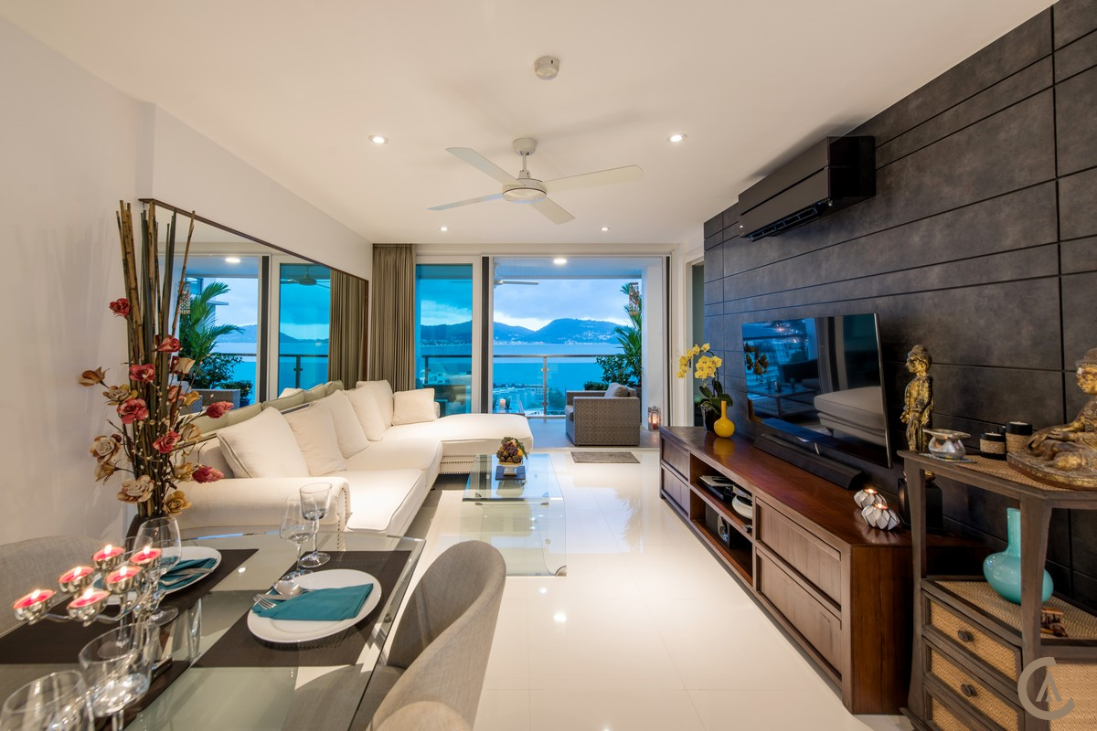 This Foreign freehold 2-bedroom condominium is located on the 3rd floor of a modern development just steps from Kalim Beach and a few minutes drive from the northern end of Patong Beach.The interior features 2 good-sized bedrooms a contemporary open-plan living and dining area and a fully fitted kitchen with a cooking island. The living area opens out to a seaview balcony which houses a comfortable outdoor sofa. .The master bedroom comes with an ensuite bathroom while the guest bedroom shares bathroom with the living area. Key shared community facilities include a large swimming pool gym and car parking. This property is suitable for either long term residence or holiday home generating good rental returns.