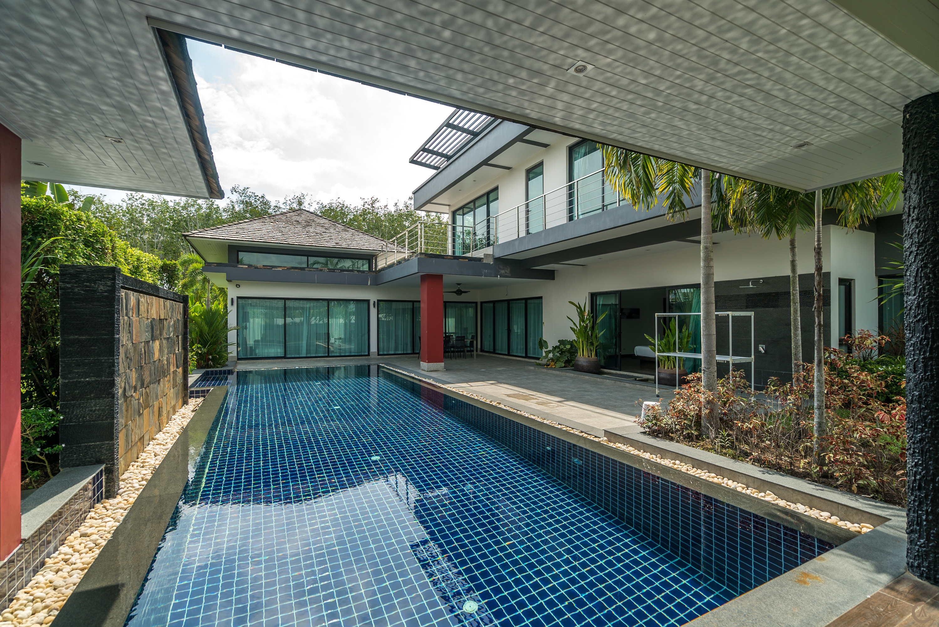 Situated in quiet area 4.5 km (2.8 mi) from Bang Tao Beach and 2.8 km (1.7 mi) from Boat Avenue Mall Phuket the villa comprises 4 bedrooms a kitchen a living area with air conditioning in all rooms. A bathroom is equipped with a bathtub and a shower. Also a full-sized refrigerator a freezer and an oven can be found here.